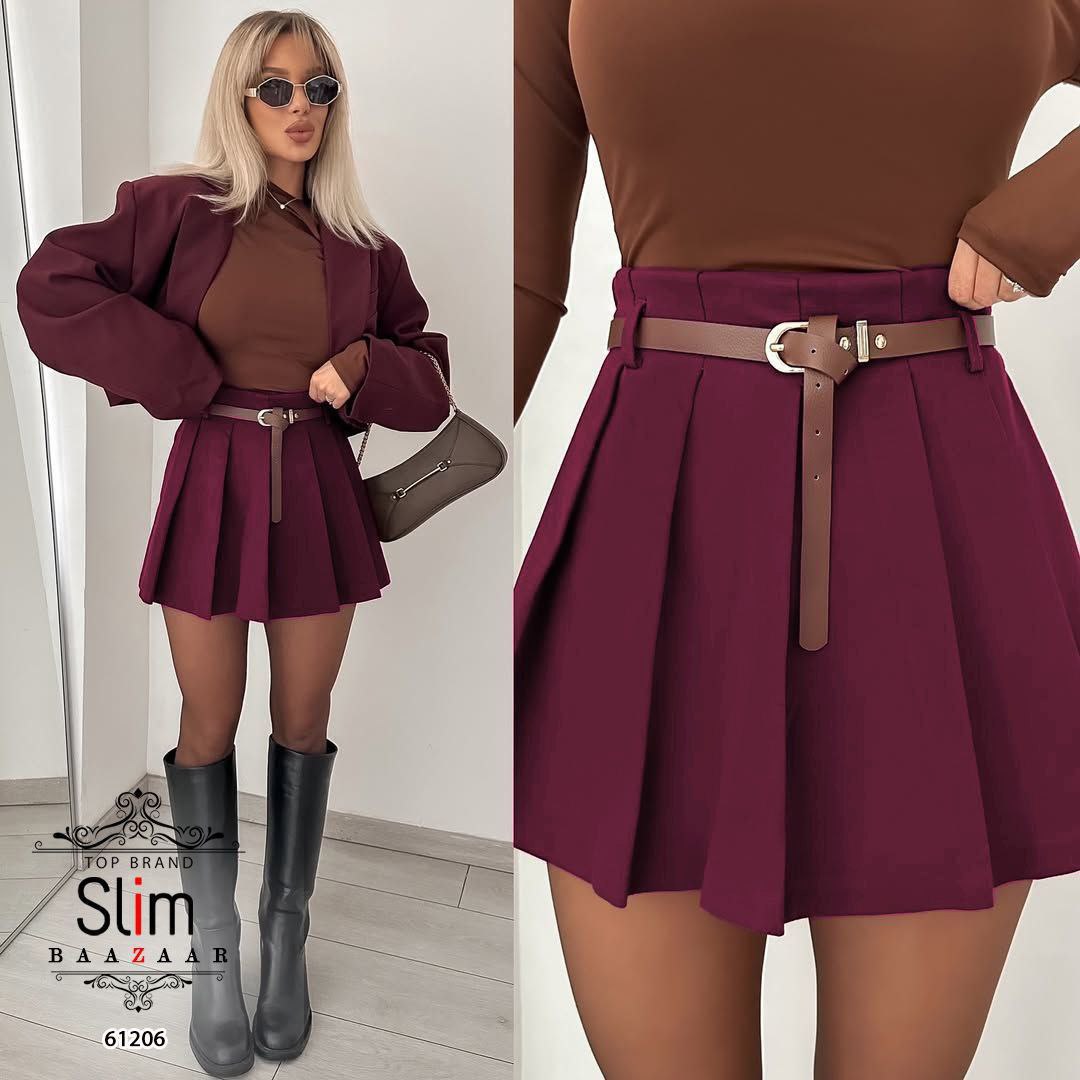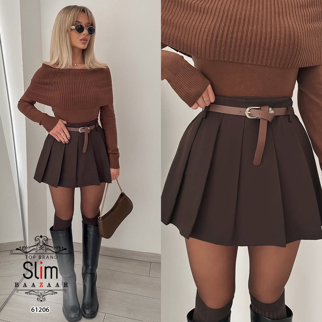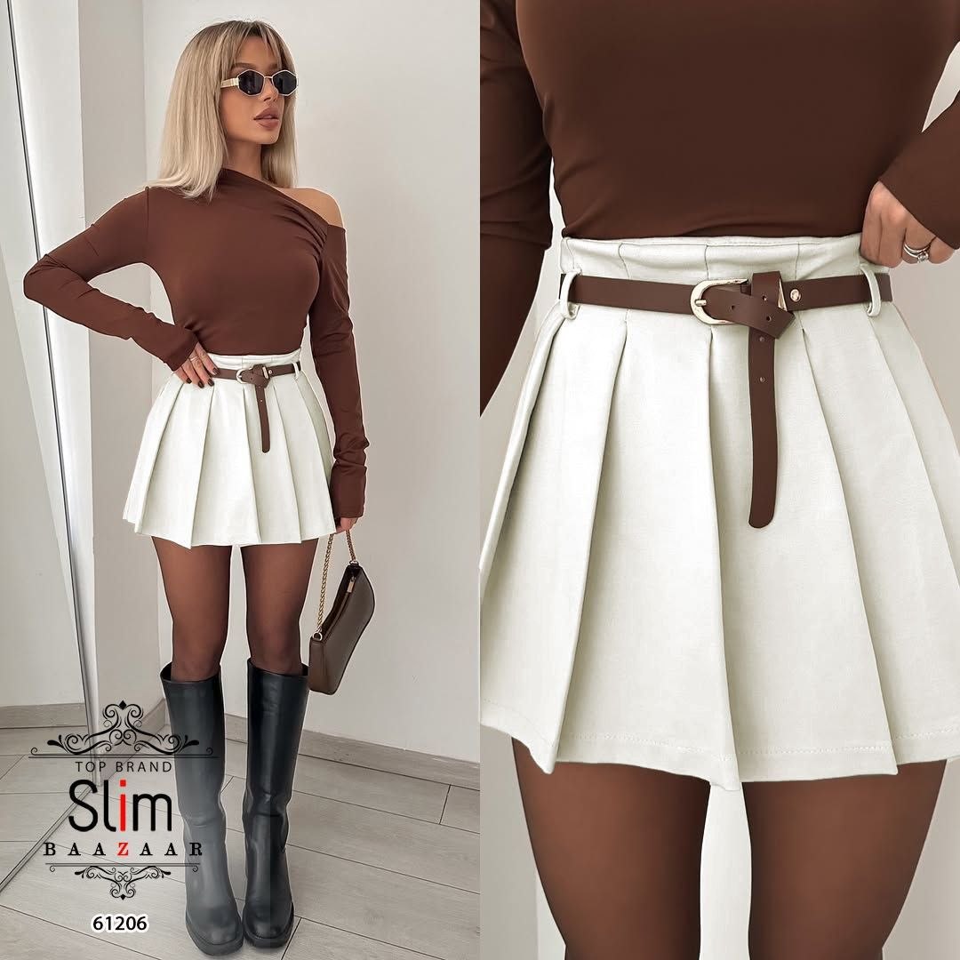 دامن کوتاه پلیسه مازراتی همراه کمربند